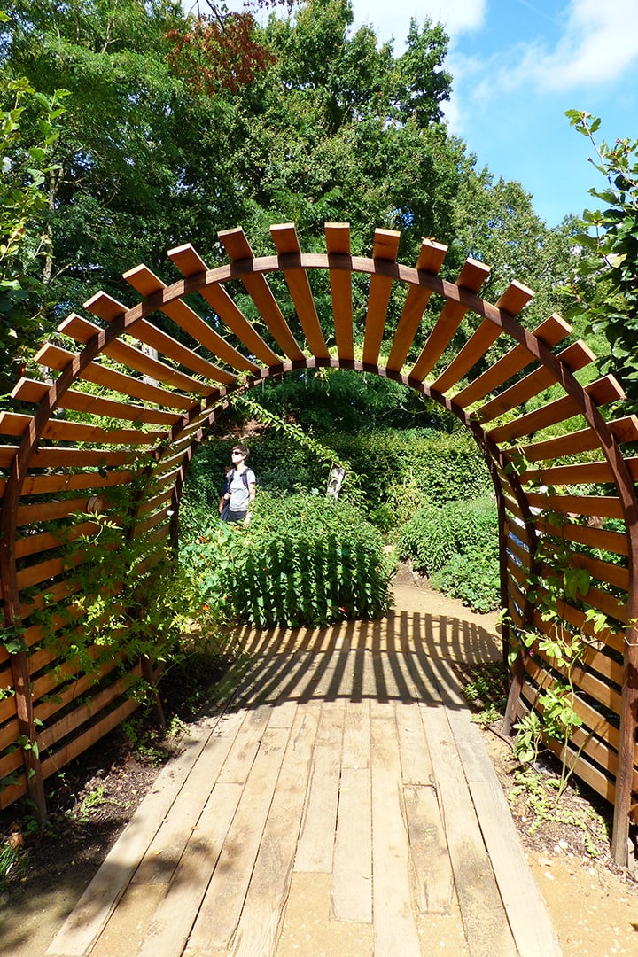 Labyrinthe d’ifs, jardin vert et potager des fleurs