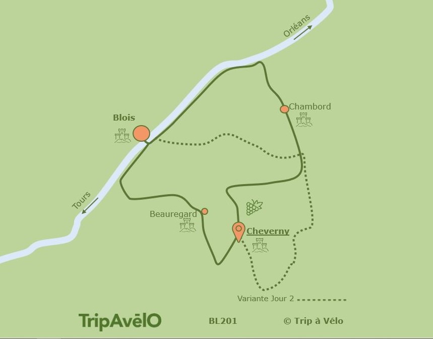 Vous traversez des villages de la Sologne viticole et pédalez à l’ombre des magnifiques chênes de la forêt de Russy pour rejoindre les bords de Loire et Blois.