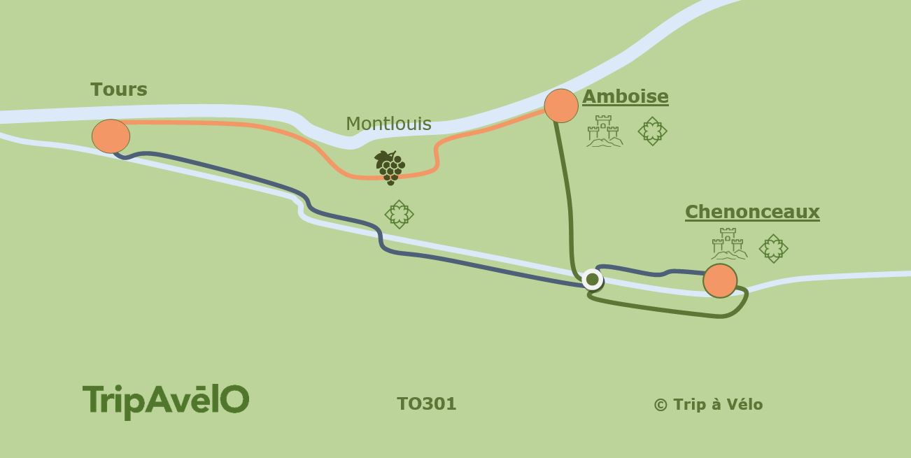 Partez pour un week-end de trois jours en vélo depuis Tours ! Un itinéraire en boucle, via les châteaux d’Amboise et de Chenonceau, idéal à parcourir en famille. Avec une majorité de pistes cyclables, des petits kilométrages et très peu de dénivelé, les parcours variés traversent le vignoble de Montlouis-sur-Loire et la forêt d’Amboise, longent les bords de la Loire et du Cher Et pour diversifier les visites et faire plaisir à toute la famille, vous pourrez partir sur les pas de Léonard de Vinci au Clos Lucé, découvrir les poissons de Loire et tropicaux au Grand Aquarium de Touraine, embarquer pour une balade en bateau sous les arches du château de Chenonceau, visiter les caves des vins de Touraine…